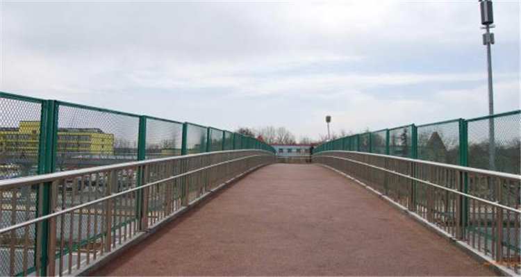 隔離柵立柱基礎;橋梁護欄網立柱通常采用鋼制立柱與水泥混凝土基礎預制在一起,為了使立柱搬運安裝方便,基礎尺寸應根據地質情況,受力情況確定,其尺寸不宜太大,建議基礎采用20(長)×20(寬)×30(高)cm的水泥混凝土預制塊。直線段可每隔30m設置一個加強型立柱,其埋深應在50cm以下,兩側增加斜撐。水泥混凝土預制和木制柱可不用基礎,采用直接埋入方式,埋入深度在30~40cm左右即可。木制柱埋入地下部分宜進行防腐處理。